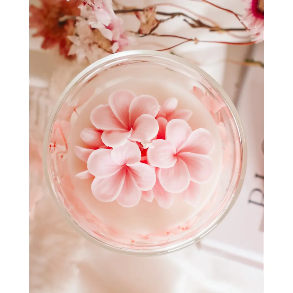 Onze ‘appelbloesem’-kaars wordt geleverd in een doorzichtige dubbelwandige pot met daarin roze gedroogde hortensia’s voor dat extra sprookjesachtige tintje. Hij is met de hand gegoten en afgewerkt met een handgemaakte, bloemvormige wasmelt in rozekleur. Dit zorgt ervoor dat elke kaars uniek en anders is (uniek).